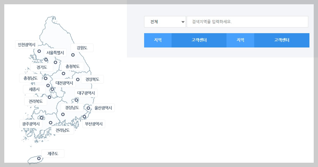 2. 해당지역을 누르면 고객센터 번호가 조회가 됩니다.